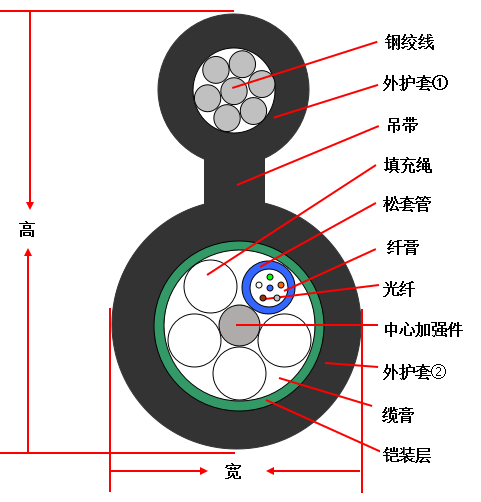 * 8字型自(zì)承式結構抗拉強度高(gāo),便于架空(kōng)敷•§€設,安裝成本低(dī)